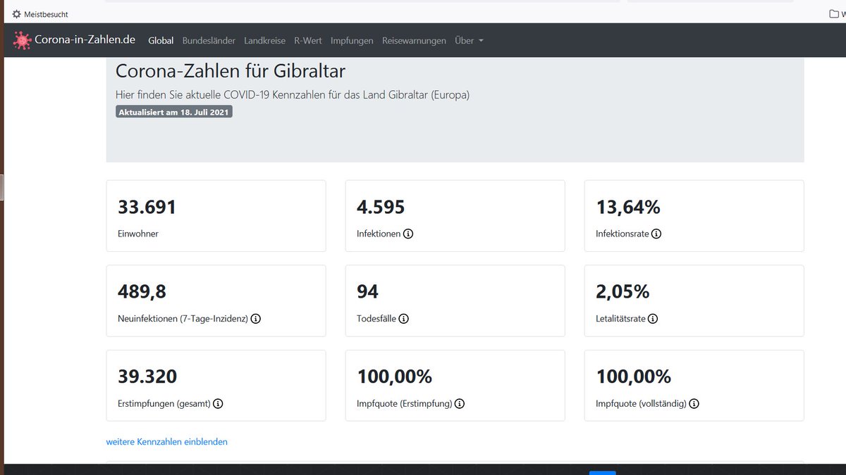 Gibraltar corona zahlen inzidenz. Das Corona-Rätsel von Gibraltar Die Halbinsel meldet eine durchgeimpfte Bevölkerung. Für die Berechnung der 7-Tage-Inzidenz werden die Neuinfektionen der letzten 7 Tagen addiert und auf 100000 Einwohner umgerechnet geteilt durch offizielle Einwohnerzahl multipliziert mit 100000. Was das genau zu bedeuten hat zeigt der Blick auf weitere Statistiken.